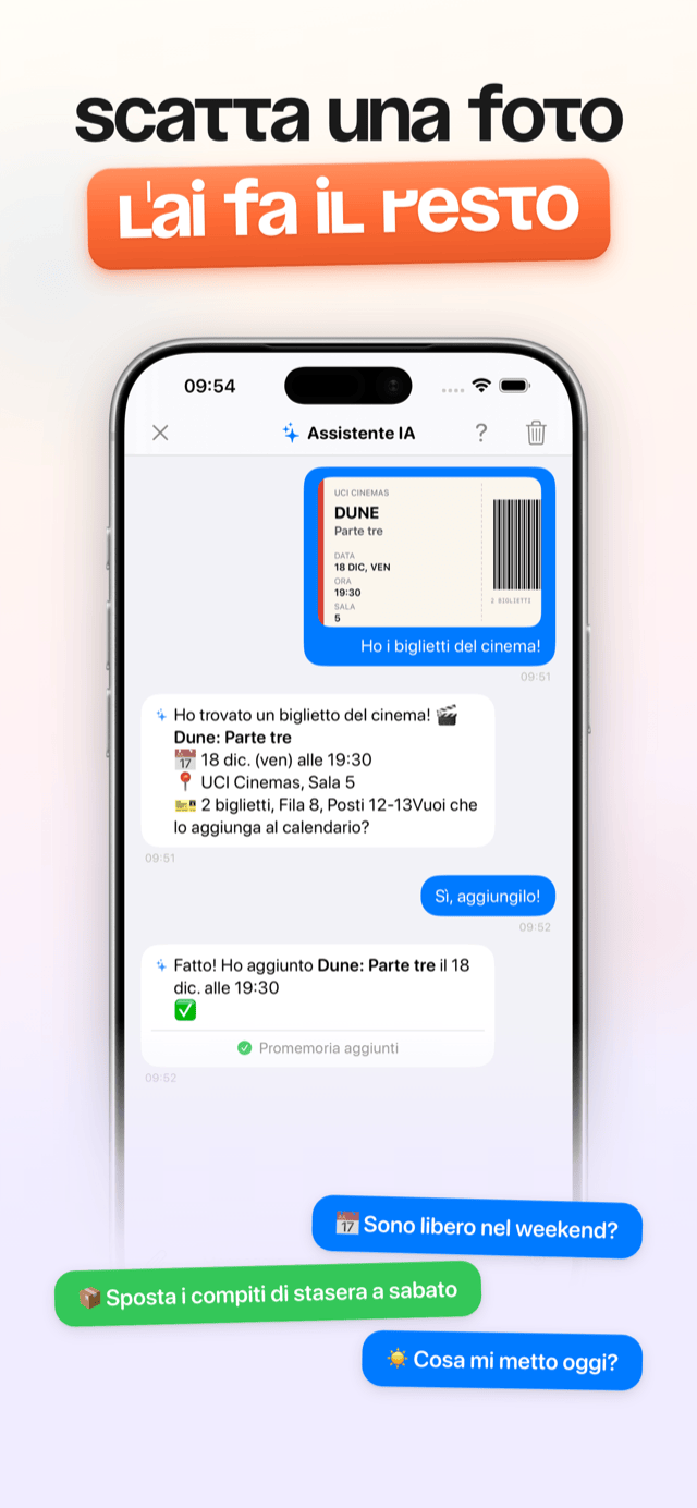 - Integrazioni: Apple Calendar (bidirezionale), Apple Reminders (bidirezionale), Apple HealthKit, Core Spotlight