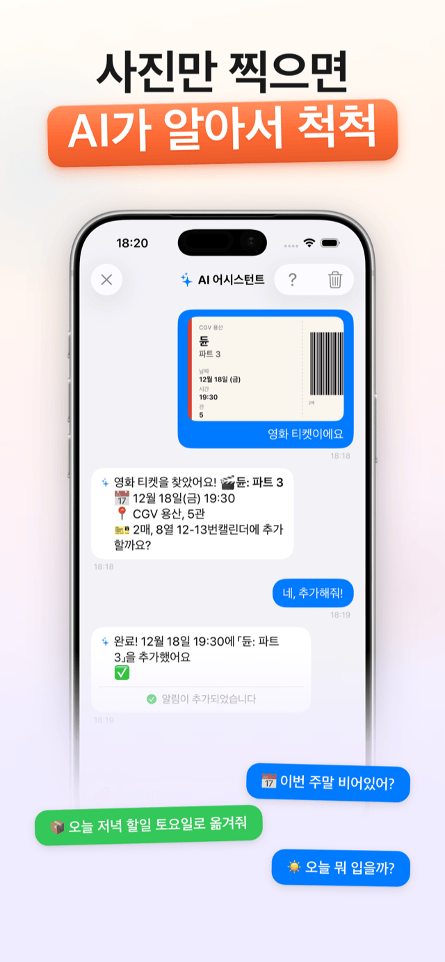 Eva의 뷰티 캘린더는 커트, 네일, 피부관리 예약에 최적인 날짜를 보여주는 3개월 일정을 표시합니다. 이는 시각적 캘린더 마커로 표시되어 사용자가 일반 할 일과 이벤트와 함께 뷰티 루틴을 매끄럽게 계획할 수 있도록 돕습니다.